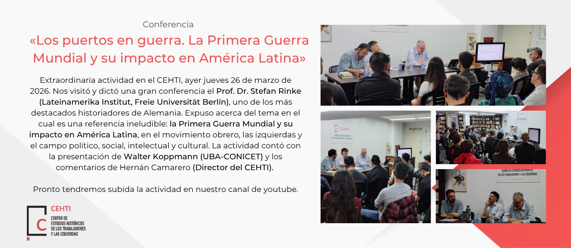Centro de Estudios Históricos de los Trabajadores y las Izquierdas | Bartolomé Mitre 777 1° A (C1036AAL). Buenos Aires. Argentina | asociacioncehti@gmail.com